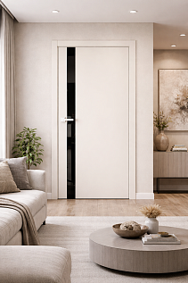 Дверь ПО SHIK 4 Слоновая кость стекло черное из Экошпона (Двери Нева) в с установкой и доставкой